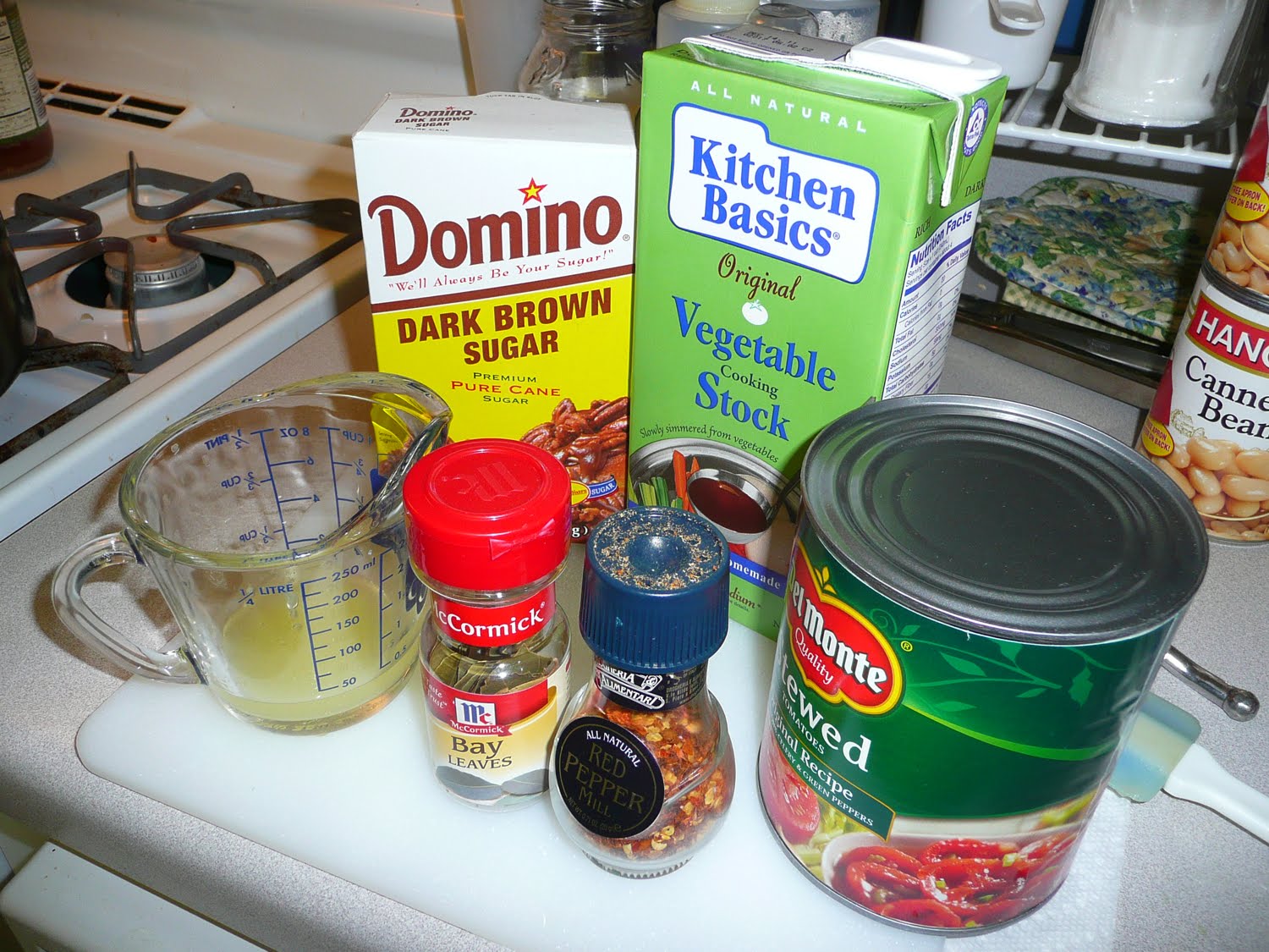 Unfortunately I found that I didn't photograph all the ingredients on the list and I also realized that I pictured "Stewed" tomatoes in this picture. Once I went to add them I realized my mistake and changed the can to actual Diced Tomatoes that the recipe called for.